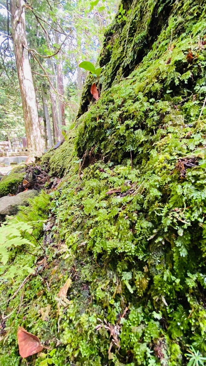 高野山の苔は、単なる装飾ではなく、自然と歴史、宗教が融合した景観の一部です。特に奥の院では、弘法大師の御廟を囲む木々や墓石の間に苔が広がり、長い年月を経て形成された神秘的な雰囲気を醸し出しています。苔は、時の経過を示すシンボルでもあり、風雨に耐えながらも静かに成長し続けるその姿は、仏教の教えと深く結びついています。