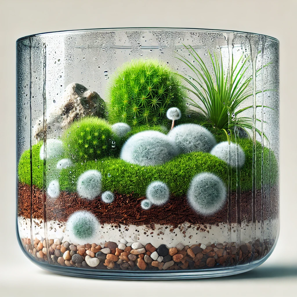 苔テラリウムは湿度の高い環境で維持されるため、カビが発生しやすい環境と言えます。カビが発生する主な原因を以下にまとめました。