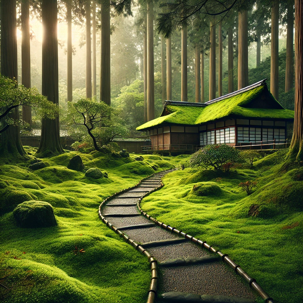 京都の苔寺(西芳寺)をはじめ、日本庭園では苔が重要な役割を果たします。苔は庭園の景観に自然な趣を与え、四季折々の変化を楽しむ要素となっています。