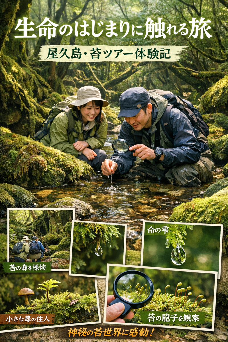 本記事では、屋久島で体験する「苔ツアー」を軸に、苔の生態、森の成り立ち、歩くことで得られる感覚の変化、そしてこの島で苔に出会う意味を、実体験と観察をもとに丁寧に綴る。苔好きの方はもちろん、自然に身を委ねたいすべての人に向けた記録である。